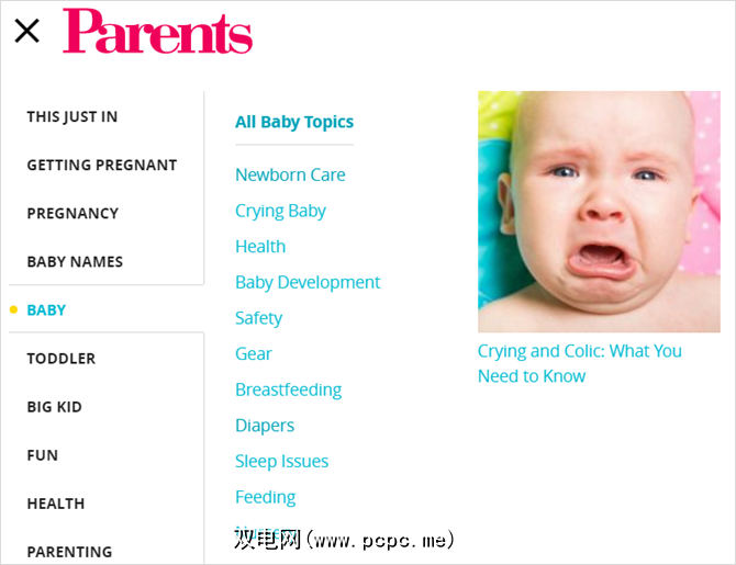 Parents杂志已经存在了很多年,无论您是否订阅,Parents.com网站上都有大量信息。从婴儿到大孩子,您会发现很好的建议,健康问题方面的帮助以及各种有用的视频。导航非常简单,而且就在顶部,因此找到想要的地方很容易。