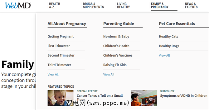 WebMD的“家庭与怀孕"部分对您更有用,以健康为中心。只需单击顶部导航中的部分,您就会看到新生儿,孩子,青少年,育儿和儿童健康的类别,因此进行选择非常容易。
