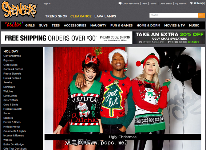 当涉及到奇怪而独特的礼品购物时,Spencer礼品就浮现在脑海。在实体商店和在线商店中,您肯定会在这里发现不常见的礼物。他们的“假日"部分使您可以从“丑陋的圣诞节",“假日幽默"和“不吮吸的礼物"等类别中进行选择。