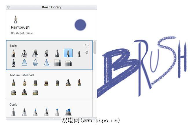 SketchBook带有一个不错的画笔库,在应用程序内部可以下载更多的画笔。画笔库包含您希望从任何光栅编辑应用程序获得的基本铅笔,毡尖和画笔。还有用于粉彩,纹理,合成画笔,形状,污迹和无色画笔的类别。