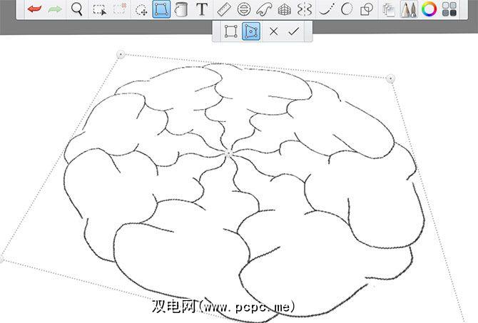 有两种变换工具:基本变换和变换变形。首先,您可以抓取一个选区,然后根据需要裁剪,旋转,移动和倾斜该选区。第二种是透视变形的形式,就像Photoshop的透视工具一样,适用于您当前正在使用的整个图层。
