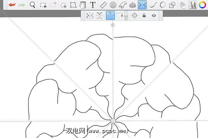 对称是一种直观的工具:在页面上的某处放置一条线条,然后将所有内容绘制到页面左侧线将在右侧镜像。您可以添加多个对称点,以便在几秒钟内快速绘制出类似曼陀罗的图案。非常适合设计徽标或从正面角度快速绘制主题。