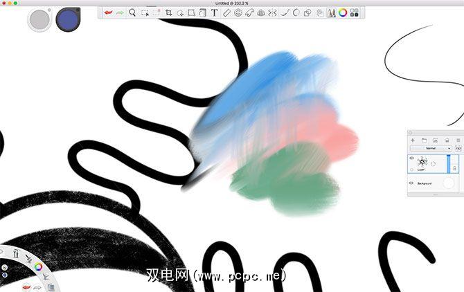 Autodesk SketchBook既涉及着色,也涉及绘图。如果画笔是正确的类型并且在同一层上,则画笔可以通过混合进行交互。它的工作原理就像您希望画笔能够工作一样,并添加了一些专为混合而设计的涂抹工具和无色画笔。