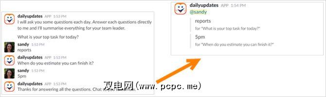 您的团队无需输入任何特殊的单词或字符。当DailyUpdates机器人询问问题时,用户只需以纯文本格式回答即可。