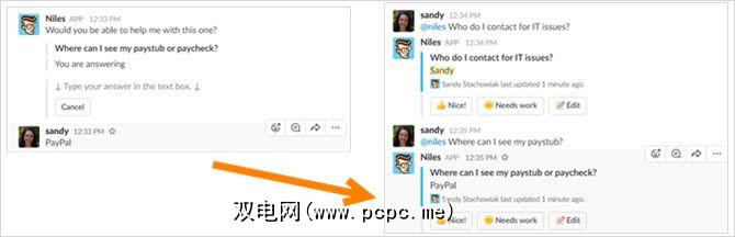 Niles还将从Slack上的消息中识别常见问题,并回答或添加到知识库中。随着时间的流逝,信息可能会发生变化,而Niles会考虑到这一点。您将每周收到通知,以查看可能过期的答案。