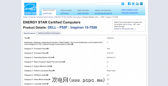 Energy Star网站列出了每台获得认证的计算机。