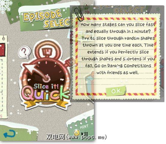 我是说切片没有计时回合吗?嗯,有一些,您会在 Slice It:Quick Mode 中找到它们,您可以在时钟上与一分钟赛跑。这是一场疯狂的砍刀式闪电战。成功使您获得了三秒的成功,失败使您失去了三秒。我先走了几轮,然后买了一些阿司匹林。