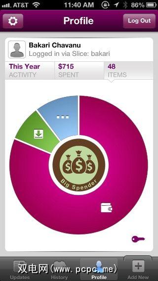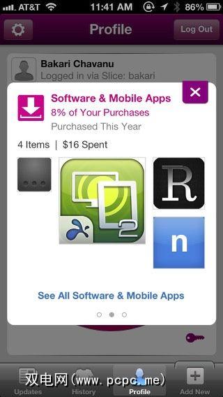 我最喜欢的关于Slice的问题是,在某些情况下,它提供的购买信息比Mint提供的更多。它不仅提供例如我的iTunes和Amazon交易,还包括我购买的产品的图像。这样,我就知道购买的产品是例如iOS应用,书籍还是来自Amazon或iTunes的硬件配件。