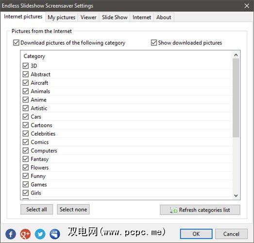 您可以将软件设置为使用来自多个本地和网络文件夹的图像。另外,一项核心功能使您可以下载和使用以下类别的图像:动物,艺术,汽车,名人,计算机,花卉,风景等。