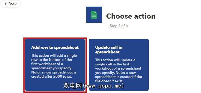返回IFTTT,单击那个。搜索表格,然后单击 Google表格。