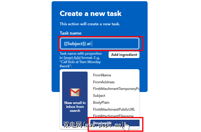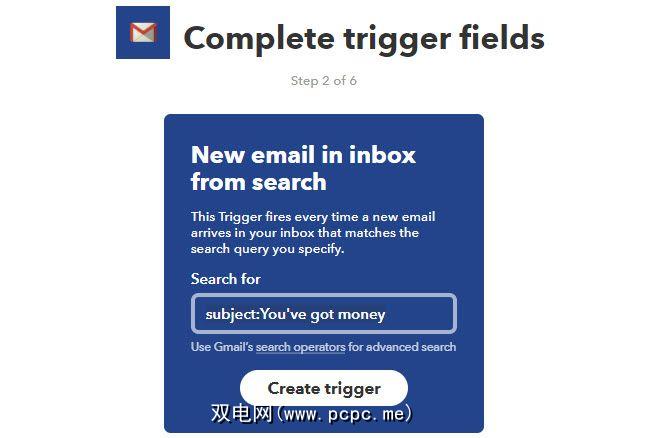 "主题:"告诉IFTTT在主题字段中扫描传入电子邮件中的指定文本。
