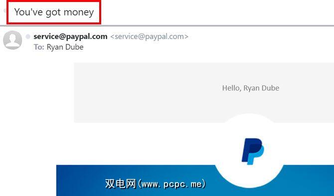 在下一个屏幕上,进行搜索查询主题:您有钱(使用付款服务在其通知电子邮件主题行中使用的任何文本)。
