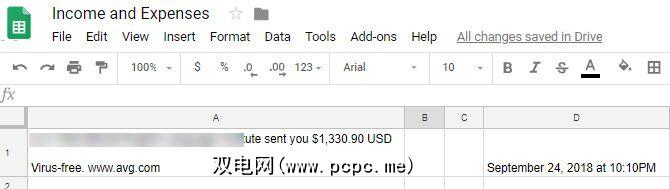 现在,每次收到付款通知时,都会在电子表格中添加新行。