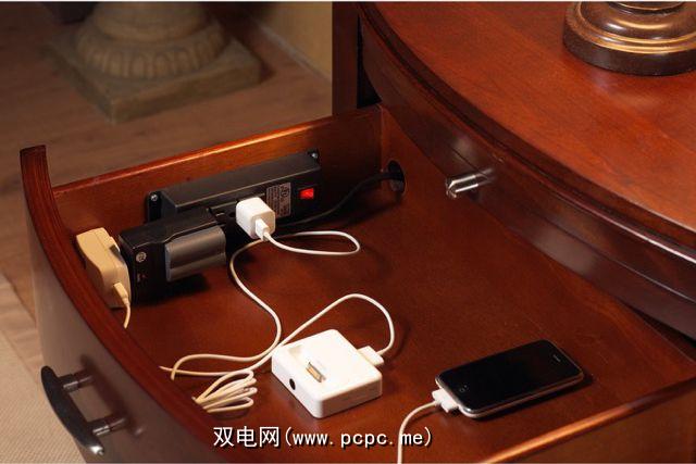 Modus的这款两抽屉床头柜内置电源插座进入抽屉,可以让您一整夜为几个设备充电,而不会因电缆而使地板杂乱无章,而设备的床头柜也不会杂乱无章。