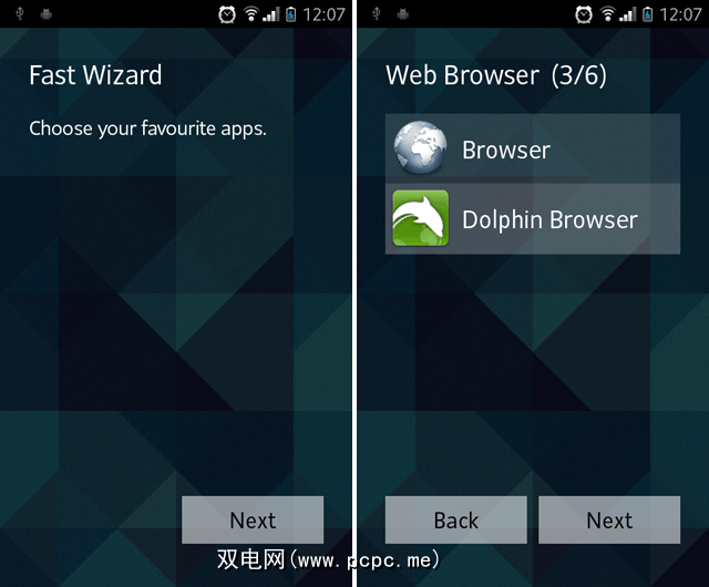 就像这些启动器一样,Smart Launcher会以快速向导开始。大约有六个步骤,每个步骤都要求您从多个类别中选择自己喜欢的应用,包括音乐,浏览器和电话。完成此操作后,无需花费几秒钟的时间,您将看到一个干净的主屏幕,其中包含您在向导中选择的六个应用程序,形状为图标环。