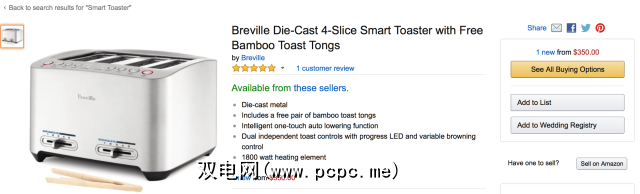 这款“智能"烤面包机在亚马逊上的售价超过350美元。烤面包机350美元!