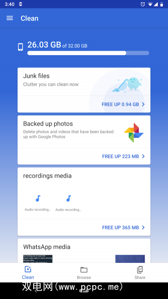 Google的Files Go除了提供所有标准文件管理功能外,还配备了一些智能工具。其中包括一些建议,这些建议可以消除您可能通过消息传递应用程序收到的重复文件,垃圾图片或视频,甚至还可以为卸载或清除您一段时间未启动的应用程序的数据提供建议。