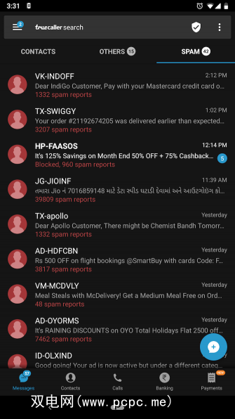 输入Truecaller,即呼叫者ID服务,该服务现在也可以阻止垃圾邮件。 Truecaller还具有许多其他便捷功能,包括用于复制一次性密码和智能类别的快捷方式。