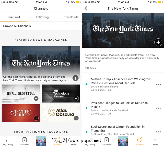 Audible应用程序最近添加了Channels,这对于订阅者来说是一个不错的选择。您会从纽约时报,华盛顿邮报等来源找到独家节目(播客),播放列表和新闻报道。