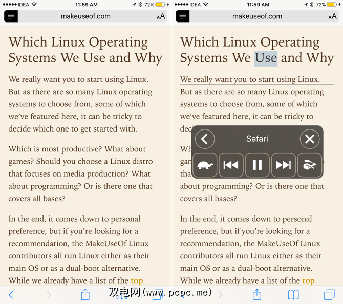 iOS的讲屏-iOS具有可访问性功能,您可以从设置>中打开常规>可访问性>语音>语音屏幕。现在,当您用两根手指从屏幕顶部向下滑动时,Siri将开始阅读屏幕上的所有内容。在Safari中打开网页,切换到阅读器模式,然后以这种方式收听文章。您还可以在iBooks和Kindle等应用中使用此技巧来收听电子书。