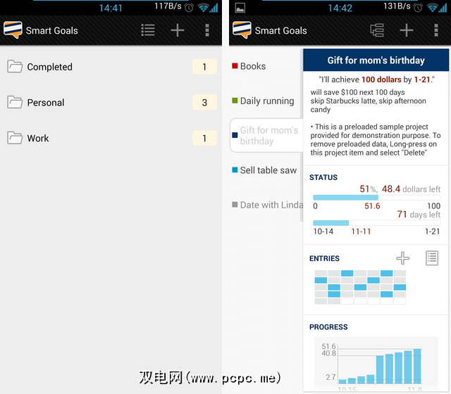 我们都有希望和梦想。但是,使它们成为现实是棘手的部分。是的,意志力在其中发挥了作用,但组织技能和长期坚持也是如此。几乎所有有价值的目标都要求我们度过艰难的时期,在情况不佳(或简直是无聊)时坚持下去,直到我们到达应许之地。尽管智能手机无法实现梦想,但它可能会有所帮助:Smart Goals是一款售价2美元的应用,可让您设置目标,然后有条不紊地跟踪实现目标的进度。它远非完美,但它是我在目标跟踪利基市场中见过的最全面的应用程序之一。