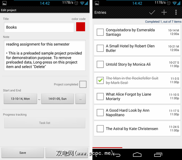虽然这是我们的第一个用例,但不一定是使用SmartGoals的最佳方法。 Android还有许多其他待办事项,包括古老而昂贵的GTasks,可让您更轻松地随机整理任务,创建嵌套的子任务,同步到云并通常提供更好的灵活性。使用SmartGoals跟踪基于任务的目标的优势在于,它可以使您始终处于应用程序的上下文中:可以更轻松地实现自己的梦想,而不用淹没在另一个工作清单中。尽管如此,如果您的项目有任何程度的复杂性,您可能应该使用第三方工具跟踪其子任务,并仅将SmartGoals用于其最广泛的应用。