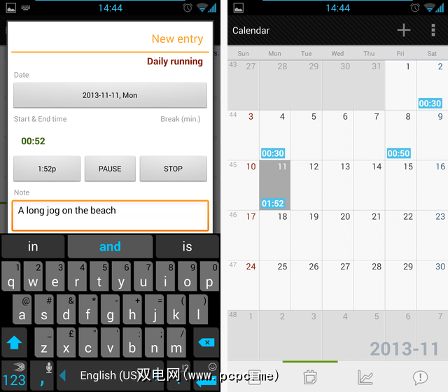 详细的日历视图(如右图所示)可以让您同时查看频率和强度,从而了解您的训练频率以及训练时间。每一天。这与RunKeeper提供给您的详细细分情况相去甚远,但是再一次,目标也不必涉及运行:也许您希望本周阅读几个小时。