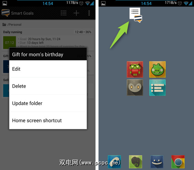 上面,您可以在主屏幕上看到快捷方式(我使用Nova Launcher Prime)。点击快捷方式,您直接进入该目标的数据输入屏幕。