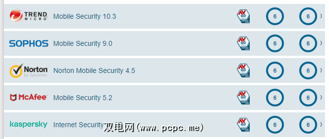 在撰写本文时,Avast Mobile Security,AVG Antivirus Free,Bitdefender Mobile Security,Kaspersky Internet Security,McAfee Mobile Security ,Norton Mobile Security,Sophos Mobile Security和趋势科技移动安全性都可以为保护和可用性提供完整的满分。