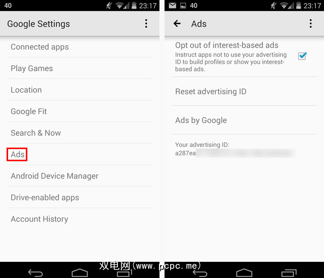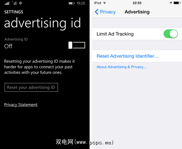 对于Windows Phone,请再次转到设置 ,这一次是广告ID 标签。这是一个简单的条目,仅允许您打开或关闭目标广告;您应该禁用它,以免被跟踪。对于iOS,您可以在设置>隐私>广告下找到该选项。在此处,启用有限目标广告设置以减少跟踪。