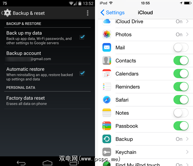 对于Android,相应的设置位于设置>备份和重置。选中此处的复选框以确保如果您有新手机,您的应用数据和Wi-Fi密码都将保持不变。在iOS上,设置> iCloud 将使您到达需要的位置。您可以选择将哪些类型的数据备份到iCloud;除非空间不足,否则最好将所有内容都发送出去。无论选择什么,请确保在底部附近启用了 Backup (备份)选项。