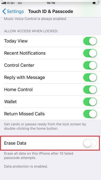 要检查该过程是否有效,请导航回Touch ID和Passcode,滚动到页面底部,并确保看到数据保护已启用消息。
