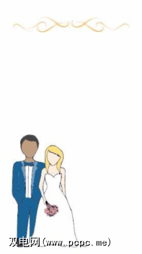 有一个新娘和一个修饰左下角,顶部饰有花卉图案。