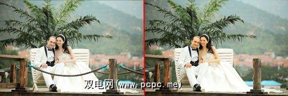 还有一些润饰画笔。选择您想要的效果,然后将其绘制在该区域上,以改善颜色或清晰度。在此示例中,除了从其中一张婚礼照片上取下绳索之外,我还为脸部添加了更多颜色(我敢肯定我们并不是真的那么苍白!)并整理到其他地方