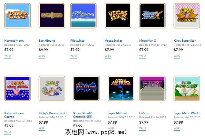 在撰写本文时,只有 Star Fox ,无法下载“星狐2",“吉西岛"和“法力秘诀" (尽管后者可通过Wii获得)。在 Yoshi's Island 的Game Boy Advance港口,名为 Yoshi's Island:Super Mario Advance 3 ,也在Wii U和3DS eShop上可用。
