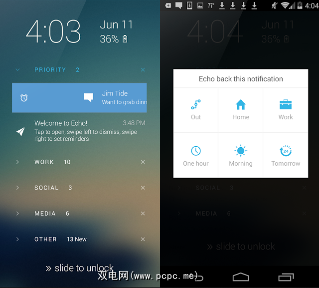 通知带有紧迫感,就像在尖叫一样,“此事现在需要您注意!"有时,此警报会有所帮助,但是如果您以后想解决它。 Echo是一个新的锁屏应用程序,可让您暂停通知并稍后将其退回。