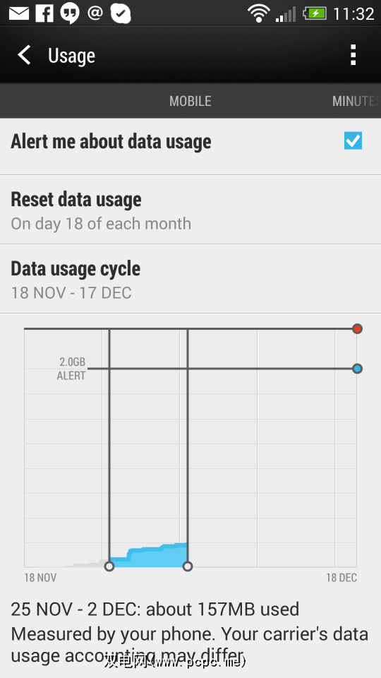 打开设置>无线和网络>使用情况(与此处的大多数步骤一样,菜单路径可能会因Android版本而异)管理移动数据使用情况时可用的选项,可以限制和重置。我们的指南“为什么不需要第三方应用程序来管理背景数据"对此进行了更详细的说明,不过请注意,如果Android设备不是全新的,则可能需要第三方应用程序。您还可以为数据使用量超出预选量设置警报。