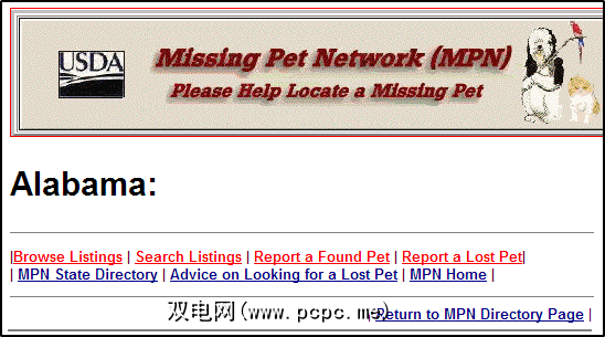 该网站已经过时,影响了它的可用性,最终影响了它的用户群,但是,它仍然是一个很好的工具。要开始查看丢失和找到的列表,请单击链接“ MPN各州丢失和找到的列表" (尽管其中也包括加拿大的列表)。单击适当的链接(加拿大或您所在的州)。从那里您可以浏览列表,搜索列表或报告丢失的宠物。您还可以获得寻找宠物的其他建议。