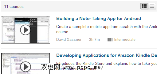 如果您通过视频学习得最好,而Marakana的Bootcamp系列还不够,那么您可能需要考虑Lynda.com上的Android开发视频,Lynda.com是一个拥有数千个网站的网站涵盖数百个与技术相关的主题的不同视频课程。 Lynda.com的Android部分提供了11门视频课程,每门课程的时间在2到7个小时之间,可以进行40多个小时的优质教育。