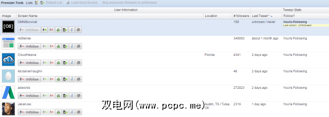 使用Tweepi时,您会看到Twitter关注者列表和一些基本统计信息,其中一项是他们的最新帖子。如果他们发布的内容不多,或者您不确定为什么关注他们,则可以取消关注。目标是要有一群人使您前进,而不是胡说八道,使您脱离使用网站的原因。