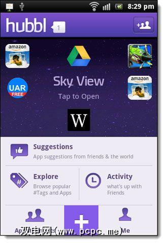 这就是Hubbl的样子。如果您厌倦了蓝色和红色,则将喜欢该应用程序上漂亮的紫色阴影。天空视图是Hubbl上应用程序的整个领域。点按屏幕可将视图扩展到“天空视图"的三个屏幕中的第一个。第一个屏幕涵盖了当前新闻中的应用程序。他们可能在博客和社交媒体上被谈论。 Hubbl说,它从人们聊天的内容中捕获实时的应用提及。嗯……Writer应用程序看起来很有前途。