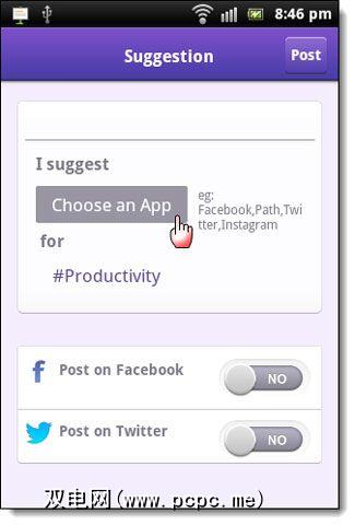 应用建议和哈希标记非常简单:当您建议一个应用程序时,如下面的屏幕所示,您只需在搜索并选择一个应用程序后附加一个适当的标签即可。该应用程序建议已添加到资源池中,Hubbl策划了最好的应用程序,并为社区带来了好处。另外,您也可以将标签视为所需的应用程序功能的过滤器。