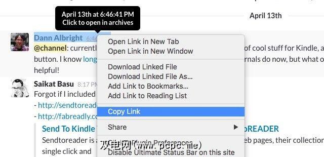 要引用任何消息,请右键单击-单击其时间戳,然后从上下文菜单复制其链接以将其粘贴到新消息中。当然,请谨慎使用此选项,以免频道中的引用消息而不是实时消息。