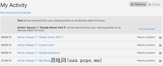 如果您观看电影并在片数之前停止观看,它将显示在“继续观看"列表中。要摆脱这种情况,请访问www.netflix.com/WiViewingActivity。在这里,您会看到所有观看过的电影的列表,从最近到最旧。单击任何标题旁边的 X 将其删除。