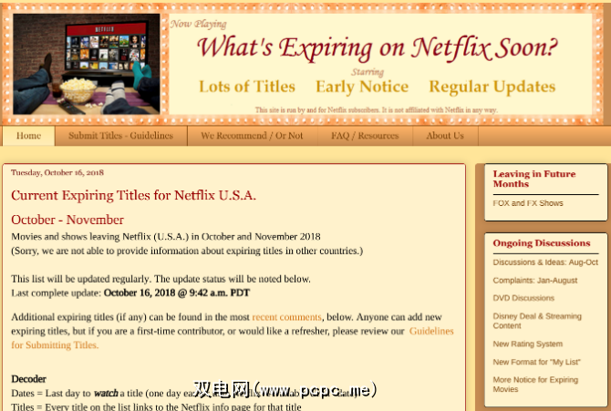 最好的方法是通过第三方网站。有很多网站可以追踪Netflix的来龙去脉。转到Netflix上的“即将到期"博客,以查找本月将要从该服务中删除的所有标题的完整列表以及该日期的离开日期。每个标题都链接到其Netflix页面,以备您立即观看。