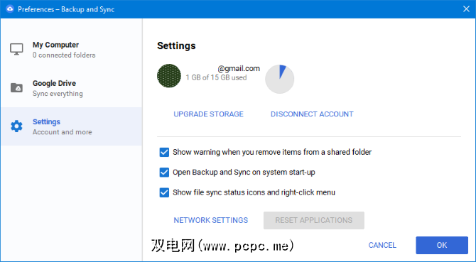 单击系统任务栏中的“备份和同步"图标。单击设置图标(三个垂直点),然后单击首选项... 。在左侧菜单中,转到设置>断开帐户>断开连接。完成后,点击获取。