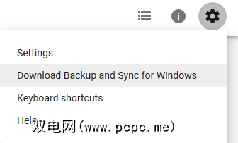 如果您仍然没有运气,请尝试重新安装备份和同步。为此,请在线访问Google云端硬盘,点击右上角(齿轮)上的设置图标,然后选择下载备份和同步。