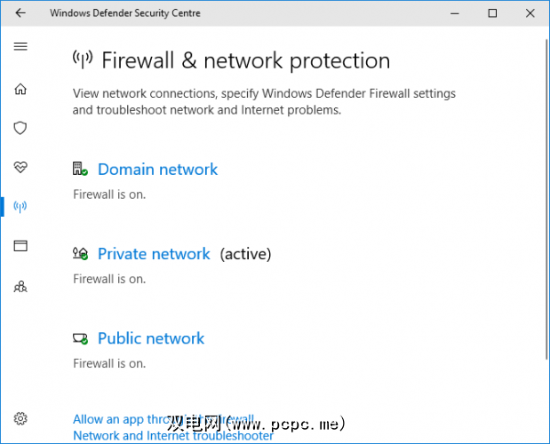 在此处,请转到防火墙和网络保护。选择您的活动网络,然后将 Windows Defender防火墙滑动到打开。
