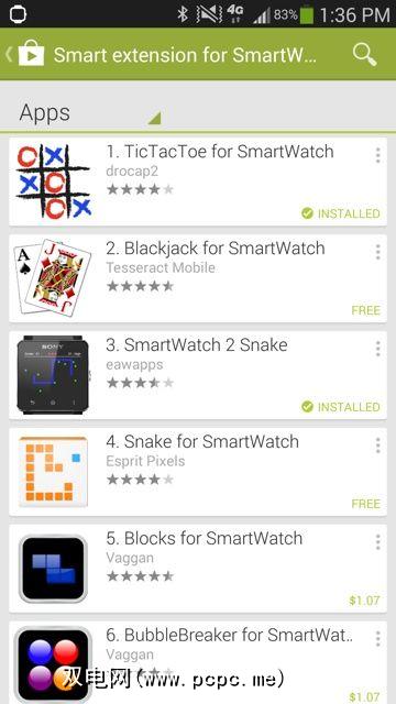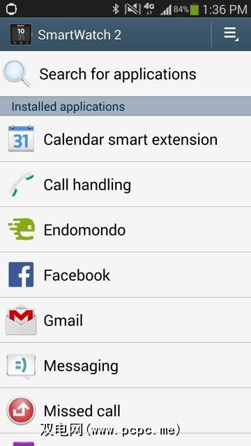 建立连接后,您需要将扩展程序添加到Smart Connect应用程序,然后在SmartWatch 2上安装各种应用程序。您可以使用Smart Connect应用程序搜索所有可用的扩展程序(尽管它为您提供了一个扩展名)。