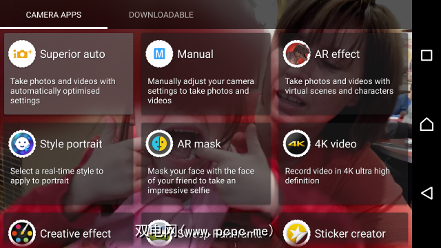 色彩还原令人信服,无论环境如何,色调和色相看起来都栩栩如生。相机应用程序中可以使用各种应用程序,例如4K视频,多相机视图(可记录设备主相机和另一台Sony Xperia Z5系列手机的相机镜头或最近兼容Wi-Fi的相机的镜头),全景模式,甚至是“面对面照片",它可以记录前后摄像头和Vine的图像或快照,然后将视频片段上传到Twitter。总共有12个相机应用程序可供使用,还有更多可供下载。